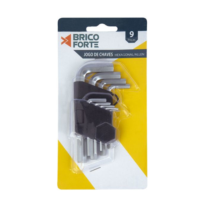 O Jogo de Chave Hexagonal/Allen 9pcs da Brico Forte oferece uma ampla gama de tamanhos, ideal para atender a diferentes necessidades de aperto e ajuste em projetos diversos.