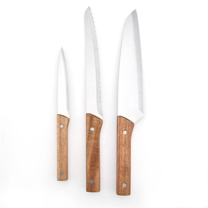Jogo de Facas de Cozinha 3 Peças com Cabo de Acácia Fosco Casa&Ideia