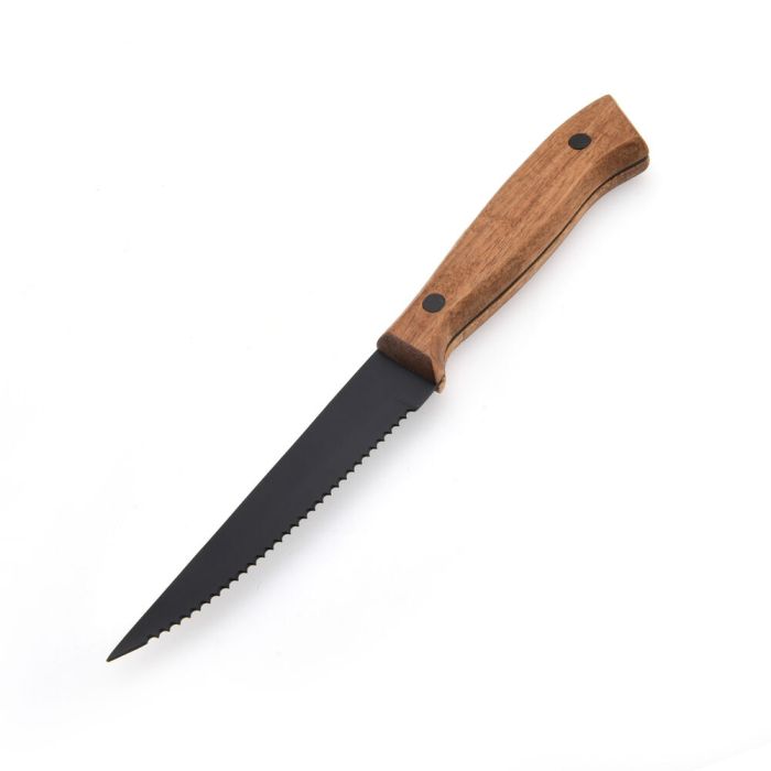 O jogo inclui facas essenciais para uma variedade de tarefas culinárias, todas equipadas com lâminas de aço inoxidável de alta qualidade. O cabo em acácia, uma madeira nobre e resistente, confere um toque sofisticado e ergonômico para um manuseio confortável.