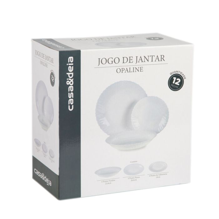 Jogo Jantar 12 Peças Branco Vidro Casa&ideia