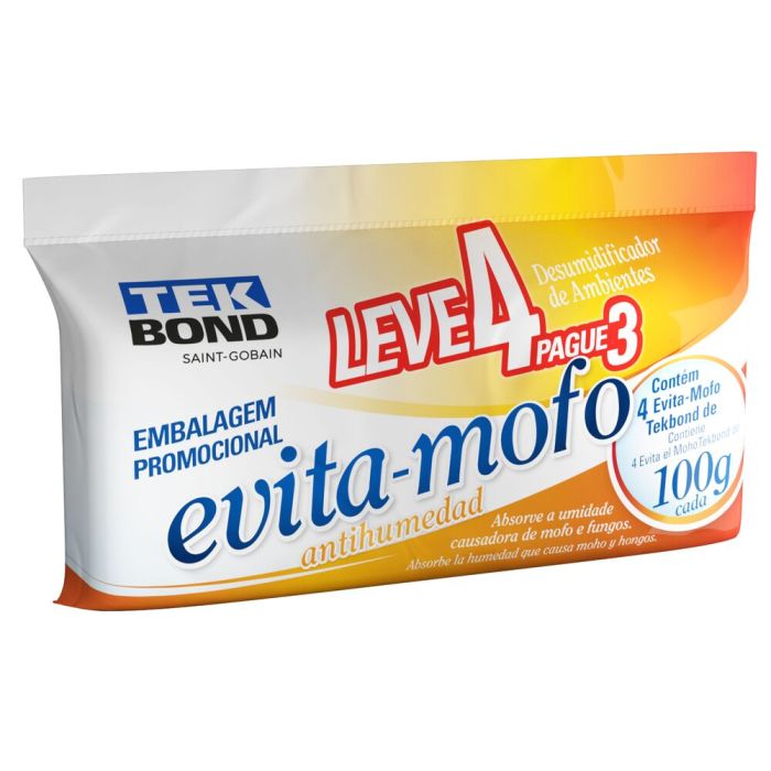 O Evita-Mofo Tekbond é um desumidificador de extrema eficiência que, além de remover a umidade do ambiente, ainda deixa uma leve fragrância enquanto age. Evita problemas com mofo, fungos e mal odor em armários, gavetas, guarda-roupas, etc.