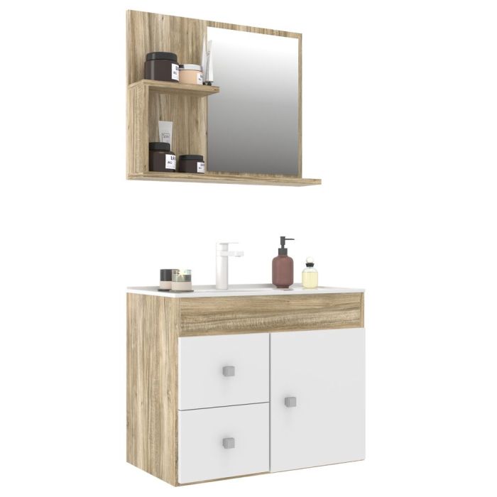 O kit balcão apresenta um design moderno e versátil que se adapta facilmente a diferentes estilos de decoração. Sua cor branca traz luminosidade ao ambiente, enquanto as linhas limpas e os detalhes sutis agregam um toque de sofisticação ao seu banheiro.