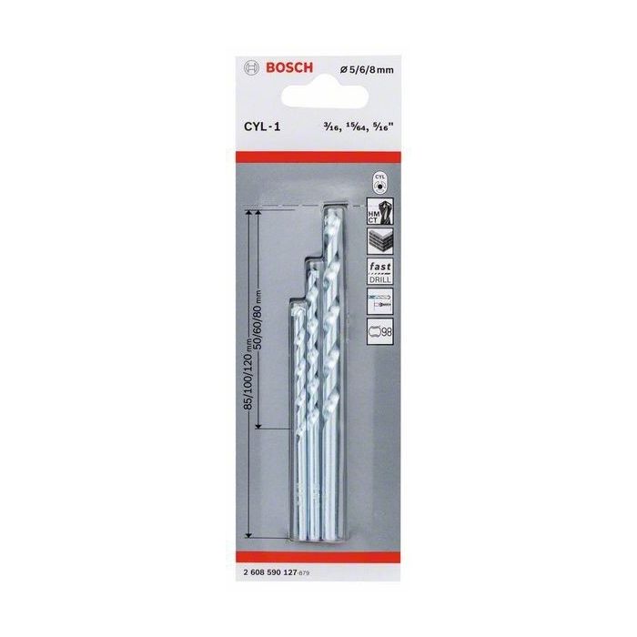| Conteúdo da Embalagem | Kit Brocas CYL-1 Bosch para Pedra/Concreto 3 Peças |