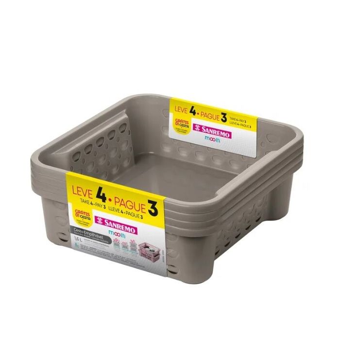 | Conteúdo da Embalagem | Kit Cestos Plásticos Leve 4 Pague 3 Sanremo 746ml Cinza |