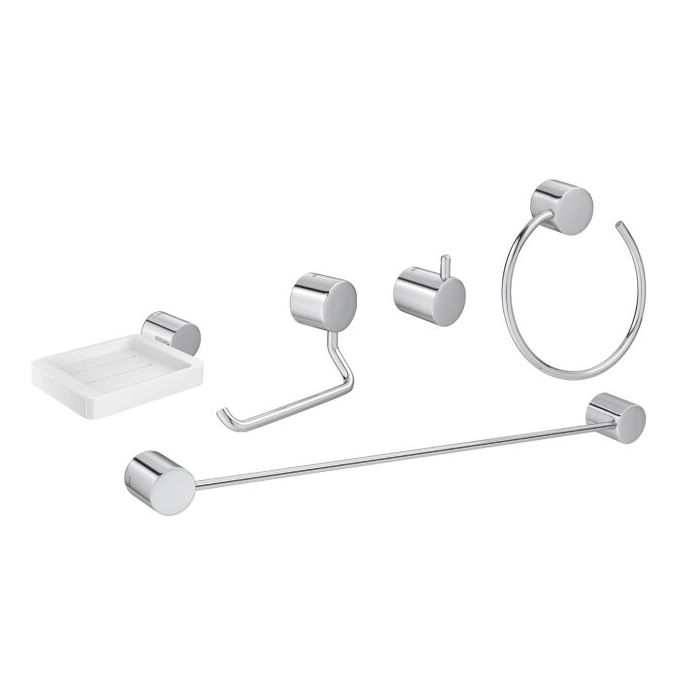 | Conteúdo da Embalagem | 1 Saboneteira, 1 papeleira, 1 porta toalha argola, 1 porta toalha barra e 1 cabide. |