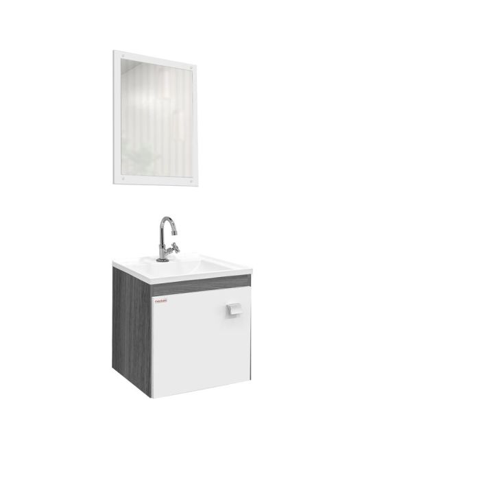| Kit Gabinete 40CM com Lavatorio e Espelheira UNO Suspenso Etna/Branco C-linea |