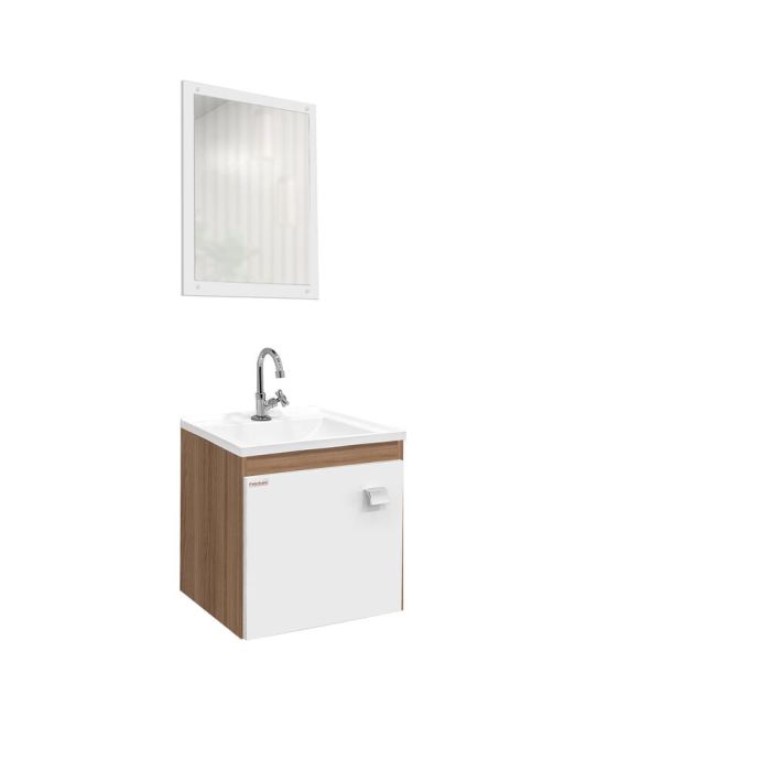 | Kit Gabinete 40CM com Lavatorio e Espelheira UNO Suspenso Nogal/Branco C-linea |