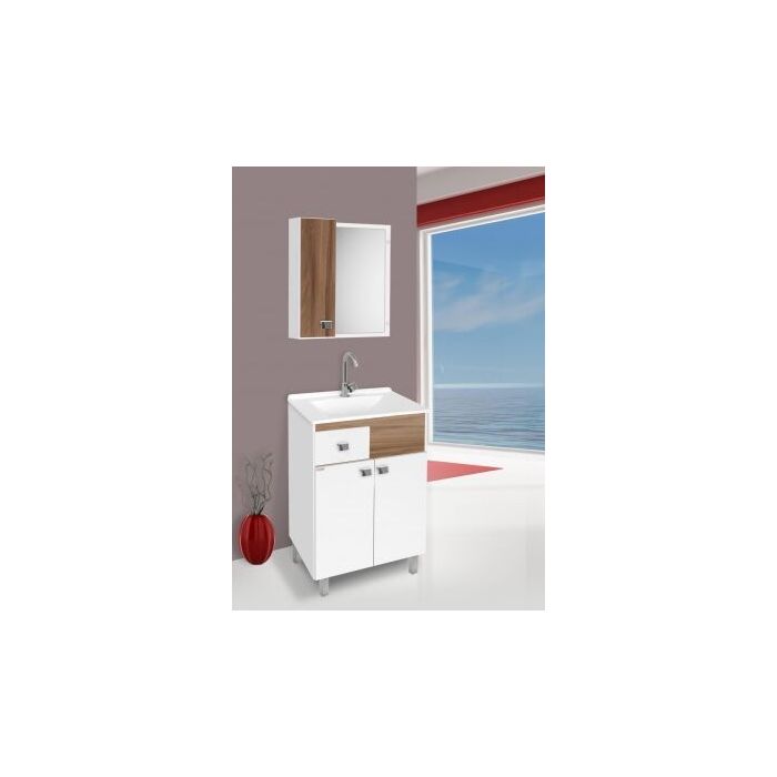 Seja para banheiro ou área de serviço, o Kit Gabinete 58CM com Lavatorio e Espelheira Pop com Pés Branco/Nogal C-Linea oferece uma solução completa que une funcionalidade, estilo e praticidade.