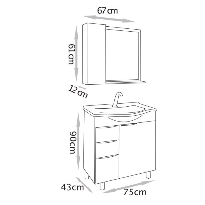 | Conteúdo da Embalagem | Kit Gabinete 75CM com Lavatorio e Espelheira Crystal com Pés Carvalho C-linea |