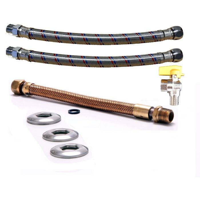 O kit é composto por uma mangueira flexível revestida por uma malha metálica, que garante maior segurança e durabilidade ao sistema, além de um adaptador com rosca de 1/2 polegada.
