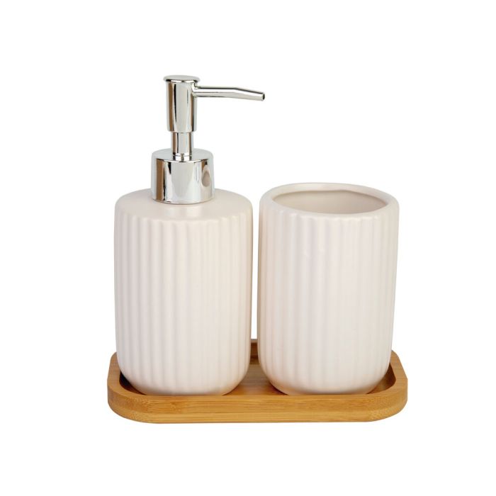 Este kit inclui três peças fundamentais para o banheiro: um porta-sabonete líquido, um porta-escova de dentes e um copo para enxágue bucal. Com esses itens essenciais, você pode manter seus produtos de higiene organizados e ao alcance das mãos, facilitando seu uso diário.