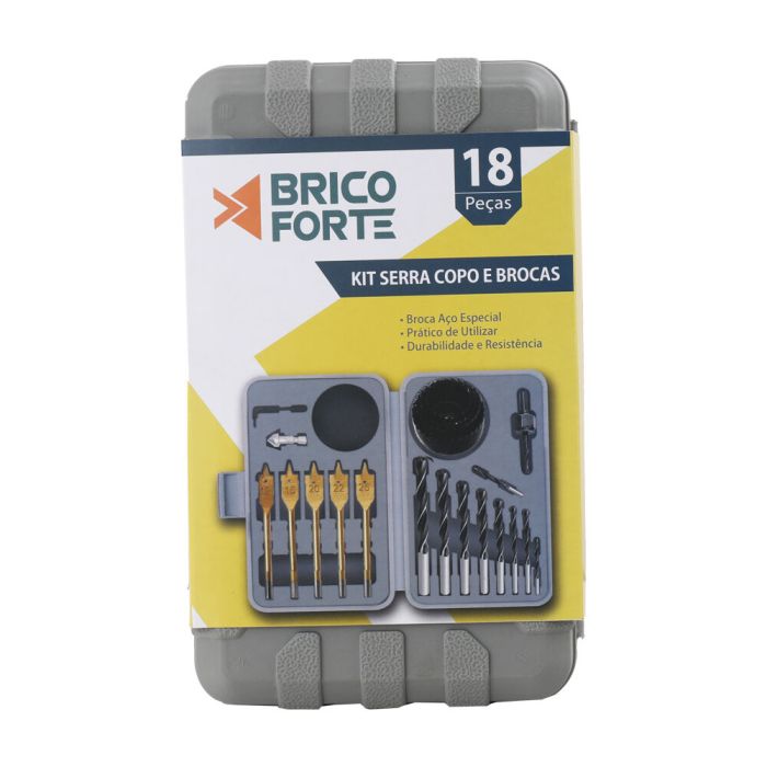 | Conteúdo da Embalagem | Kit Serra Copo e Bits 18 Peças Brico Forte |