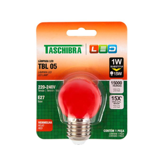 Selecionar regiãoLâmpada LED Taschibra Bolinha Vermelha 1W E27