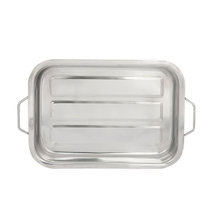 O aço inoxidável utilizado na fabricação da lasanheira é resistente, e proporciona uma longa vida útil ao produto. Além disso, o acabamento polido confere um aspecto elegante ao recipiente, tornando-o uma peça bonita e sofisticada para servir diretamente na mesa.
