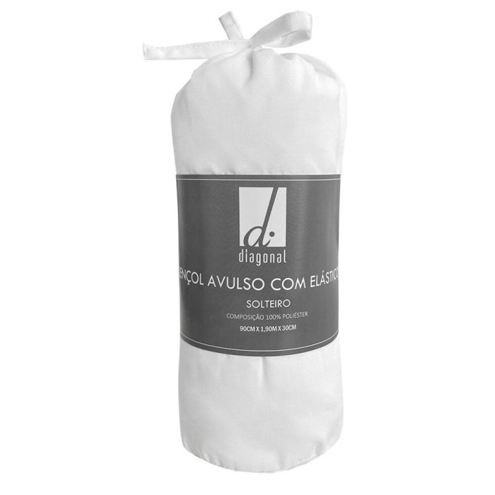 Lençol Avulso Solteiro com Elástico 90x190cm Branco Diagonal