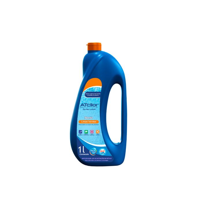 O Limpa Bordas da Atcllor está disponível em embalagens com 1 litro, proporcionando praticidade e economia para a limpeza das bordas da piscina.