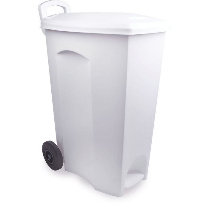 Lixeira Plástica Pedal e Roda Plasútil Branco 90L