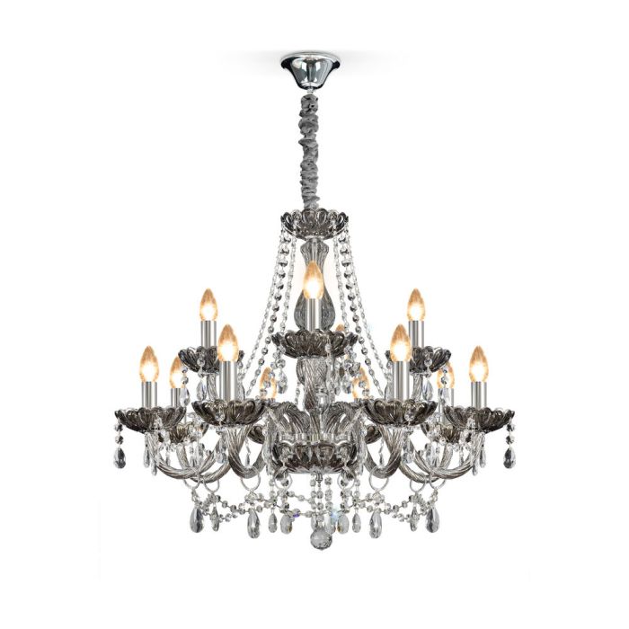 Lustre de Cristal Bronzearte 12 Lâmpadas E14 Clássico Fumê