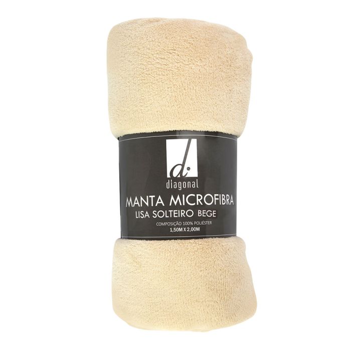 Manta Microfibra Lisa Solteiro 1,50x2,00m Bege Diagonal