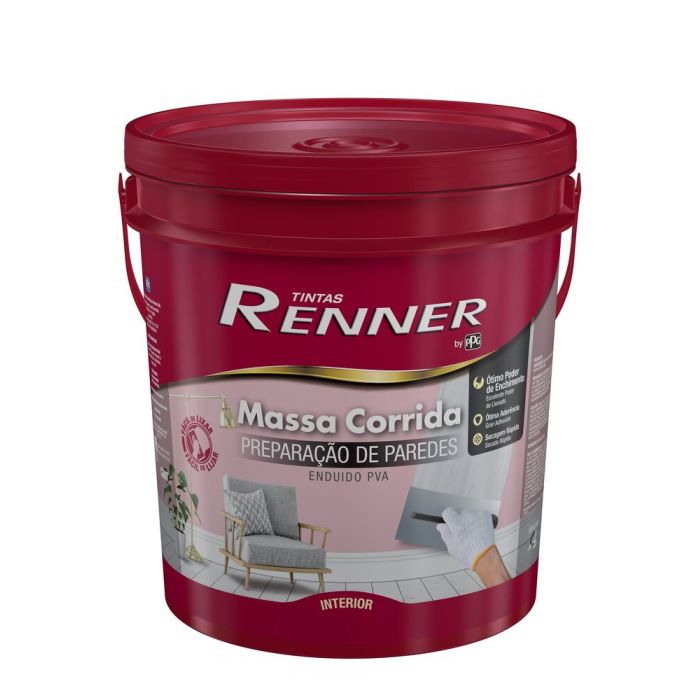 A Massa Corrida Balde 25kg Branca Renner é a escolha ideal para quem deseja um acabamento liso, uniforme e de alta qualidade em paredes internas. Desenvolvida para nivelar e corrigir imperfeições, sua fórmula proporciona cobertura eficiente, preparando a superfície para uma pintura perfeita.