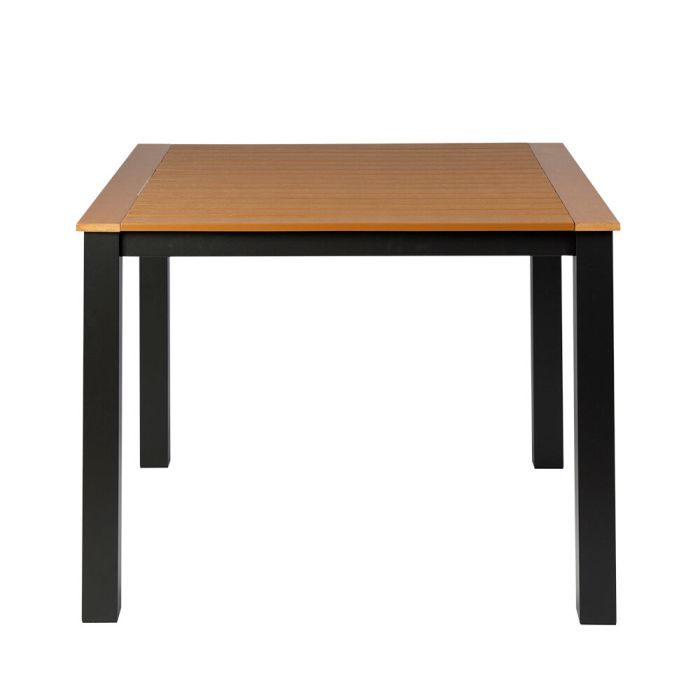 O tampo em Polywood (madeira plástica) ripado traz o toque aconchegante e natural da madeira, mas com a praticidade de um material que não sofre com as adversidades do ambiente externo. Esse detalhe faz toda a diferença no visual, dando um charme extra sem a necessidade de manutenção constante.