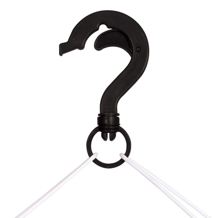 Com estrutura em polipropileno, varetas em aço pintado e prendedores também em polipropileno e aço, é um produto durável e confiável. Seu formato redondo permite que ele gire com o vento, otimizando o tempo de secagem. Conta com 16 prendedores fixos e gancho em estilo mosquetão, garantindo praticidade na fixação.
