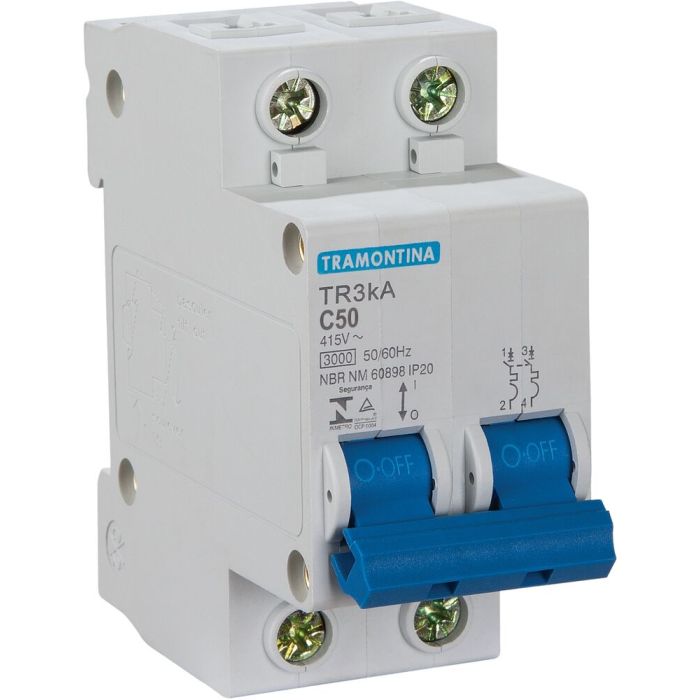 | Conteúdo da Embalagem | Minidisjuntor TDJ3 50A curva 3kA Bipolar Branco Tramontina |