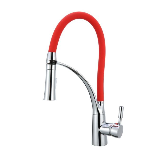 Torneira Misturador Monocomando para Cozinha de Mesa Bica Alta 1/2'' Color Flex com Ducha Vermelho Addra