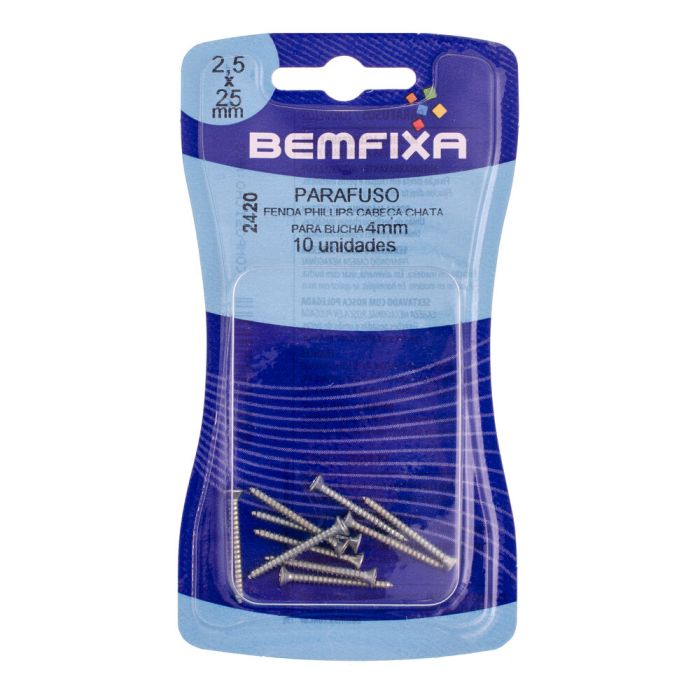 Parafuso de Ferro para Madeira Bemfixa 2,5x25mm Cabeça Chata 10 Peças