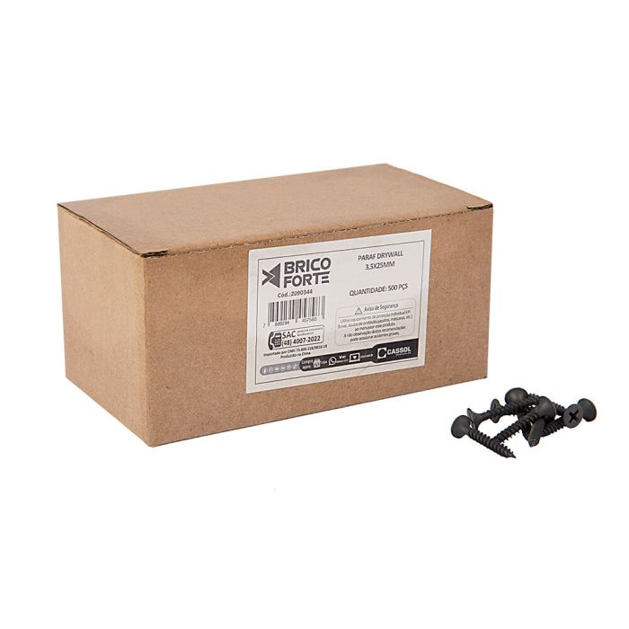 Os Parafusos Drywall 3,5x25mm da Brico Forte são especialmente projetados para garantir uma fixação segura em placas de drywall, proporcionando um acabamento resistente e duradouro.