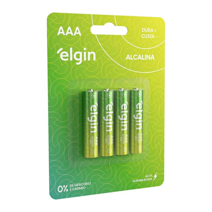 Pilha Alcalina Blister AAA 4 Peças Verde Elgin.