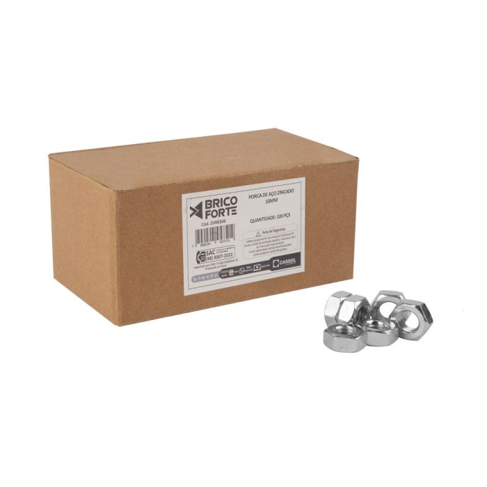 Porca de Aço Zincado 10mm 100pcs Brico Forte