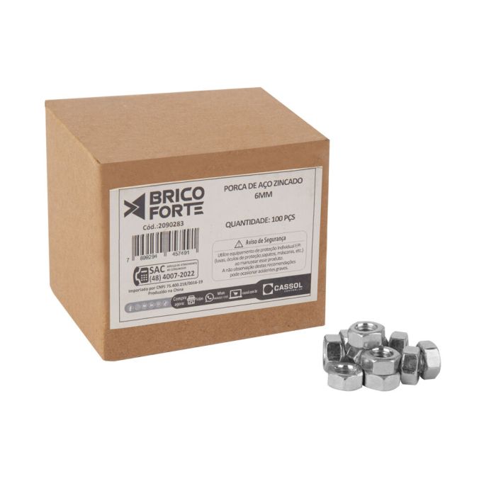 Porca de Aço Zincado 6mm 100pcs Brico Forte