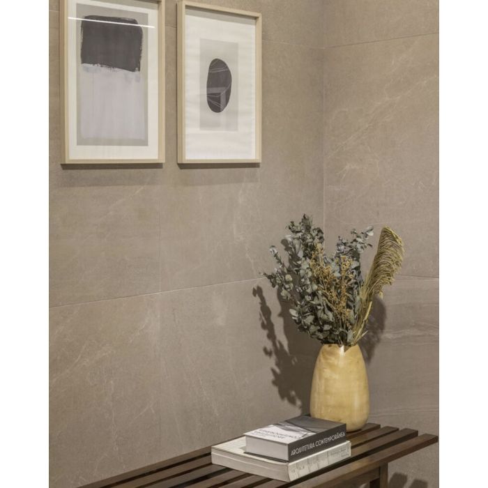 Além do visual sofisticado, o Gobi Greige oferece praticidade e resistência. A tecnologia de impressão digital permite uma produção mais ecológica, reduzindo o impacto ambiental sem abrir mão da estética natural da pedra. O acabamento retificado garante bordas mais precisas e juntas mais finas, valorizando ainda mais o ambiente.