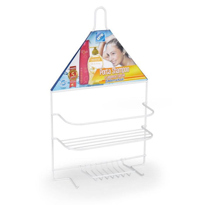 Transforme seu banheiro com o Porta Shampoo com Saboneteira Branco Arthi e aproveite mais praticidade e organização no seu dia a dia!