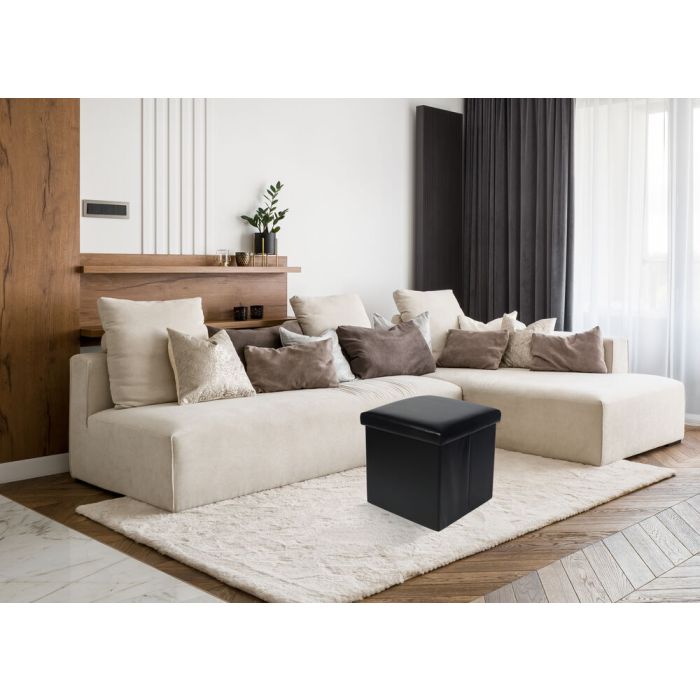 Puff Organizador Dobrável 38x38cm Isis Preto Diagonal