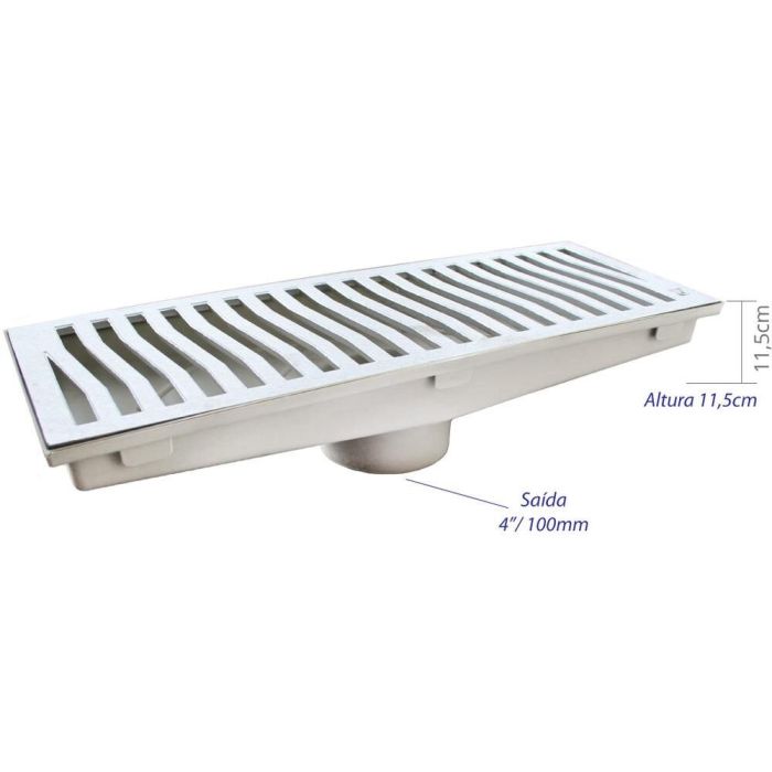 | Conteúdo da Embalagem | Ralo PVC e Alumínio Costa Navarro Saída por Baixo 14x48cm |
