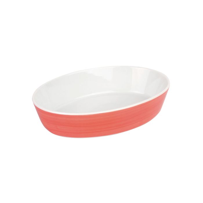Refratário Oval de Porcelana 26cm Vermelho e Branco Casa&Ideia