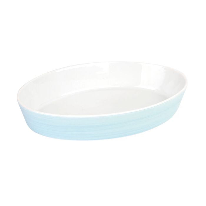 Refratário Oval de Porcelana 32cm Azul e Branco Casa&Ideia