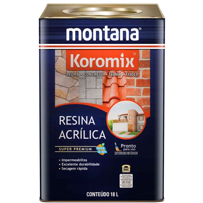 | Conteúdo da Embalagem | Resina Acrílica Montana Koromix Incolor 18L 33E0818815 |