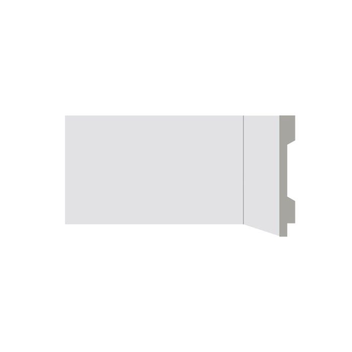 O rodapé LEV101 tem a cor branca em seu acabamento e sua matéria-prima é chamada de poliestireno conhecido também como EPS.
