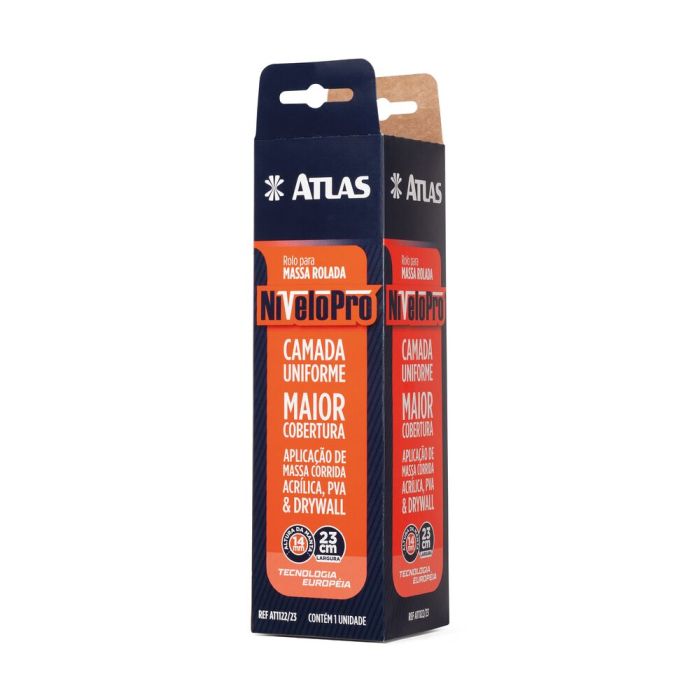 O Rolo Textura Nivelopro para Massa Cinza 23cm Atlas é projetado para ser usado em alisamento e nivelamento de paredes, garantindo um acabamento profissional. Ideal para aplicações em massa corrida, acrílica PVA e drywall, este rolo não deve ser usado com solventes químicos que possam danificar sua manta.