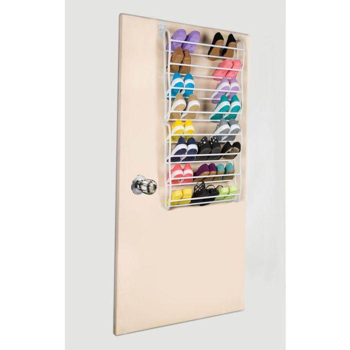 A sapateira é projetada para ser suspensa atrás de uma porta, economizando espaço e permitindo fácil acesso aos calçados. Essa disposição é especialmente útil em ambientes onde o espaço é limitado. A coloração branca e o design funcional da sapateira permitem que ela se integre facilmente em diferentes estilos de decoração, proporcionando uma solução de organização prática e esteticamente agradável para o armazenamento de sapatos.
