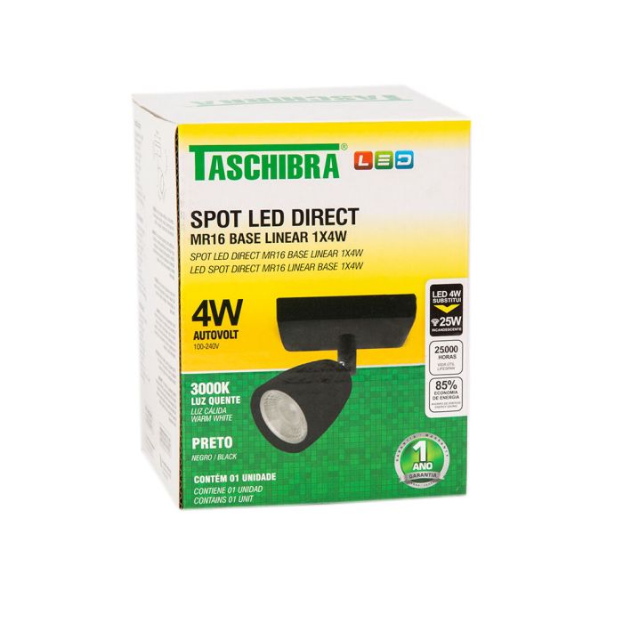 | Conteúdo da Embalagem | Spot 1 Lâmpada LED 4W Direct Linear 3000K Luz Amarela Taschibra |