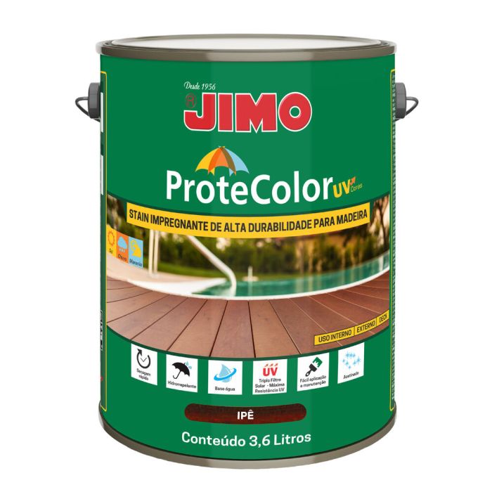 Selecionar regiãoJIMO Protecolor UV Acabamento de Alta Durabilidade Progete e Embeleza Resistente ao Sol Chuva e Maresia Ipê Galão 3,6 Litros