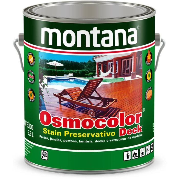 Não perca tempo e adquira agora mesmo o Stain Montana Osmocolor UV Deck 3,6L Castanho Acetinado para deixar seu deck de madeira protegido e com