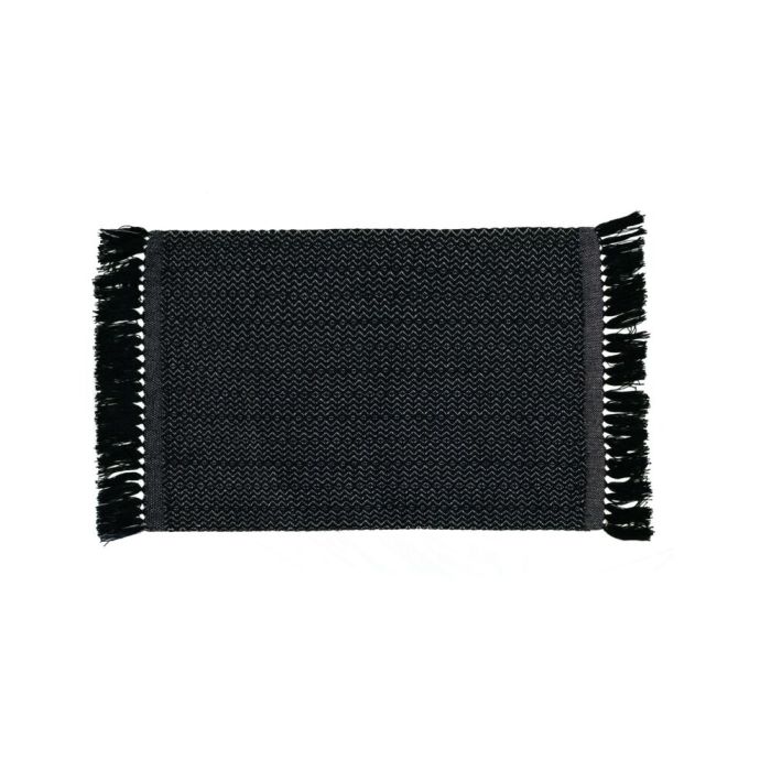Tapete de Algodão 0,47x0,70m Étnico Preto Artesanal Teares