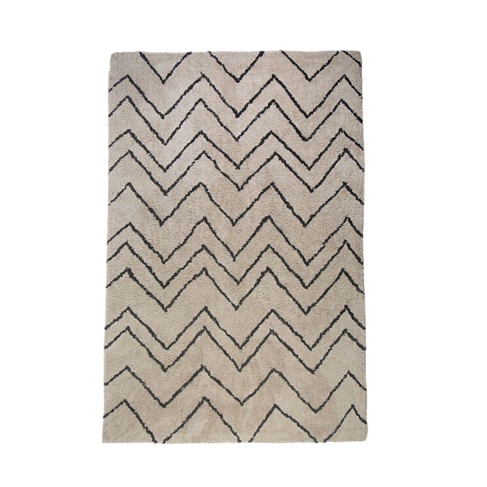 Tapete Retangular com Bainha de Algodão 120x180cm Natural/Preto Grindania