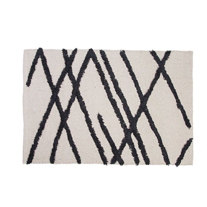 Tapete Menphis Retangular Branco/Preto Algodão 60x90cm Diagonal