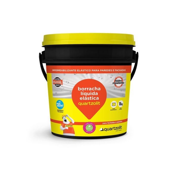 | Informações Adicionais | A borracha líquida elástica quartzolit é uma pintura impermeabilizante de altaperformance e com alta elasticidade (500%), ideal para a revitalização eimpermeabilização de fachadas e paredes. Possui um excelente acabamento e coberturaalém de ter ação hidrofugante, “efeito gota”, blindando a superfície contra os efeitos daumidade. 1. INDICAÇÕES • Fachadas • Revitalização de fachadas (pintura sobre textura, grafiatos, tintas etc); • Revestimentos verticais (cerâmicas e porcelanatos) desde que aplicado o primer flexquartzolit; • Paredes internas e externas; • Telhas de fibrocimento; • Telhas cerâmicas; • Telhas metálicas; • Lajes sem trânsito; • Drywall. |